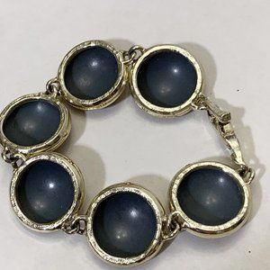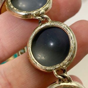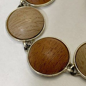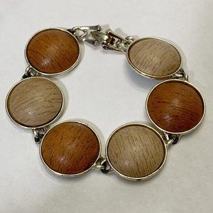 Vintage faux wood grain round link Bracelet lightweight gold MCM mid century