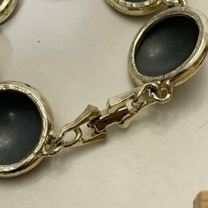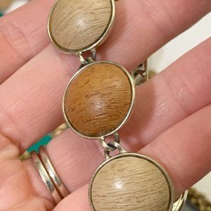 Vintage faux wood grain round link Bracelet lightweight gold tone