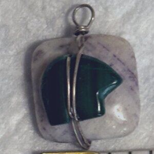1990s Malachite bear and I don't remember the purple and cream chicklet bead ( it is either charoite or sage amethyst I think)nor where the beads came from