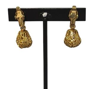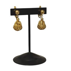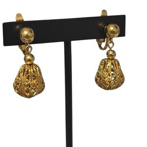 Vintage filigree, gold town drop dangle clip on earrings estate jewelry