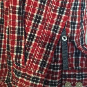 Vintage red oversized flannel with a vintage "UP YOUR'S" patch sewn to pocket. One of a kind.