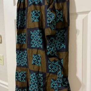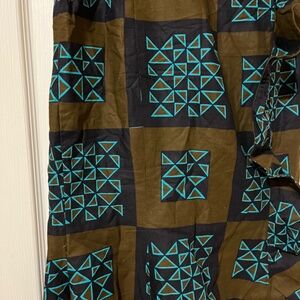 Vintage flared skirt. Cotton. Brown and turquoise. Zipper back closure. Gathered waist. No tag. See measurements in photos. Vintage condition.
