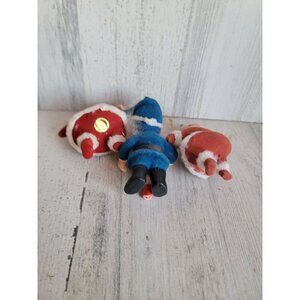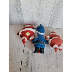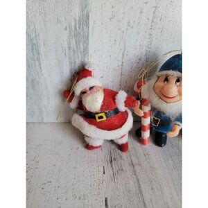 Vintage flocked Santa Claus elf ornament Xmas set unique