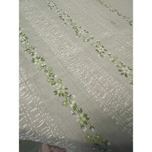 Vintage flocked textured floral flower pattern green white table cloth 58 x 46 size