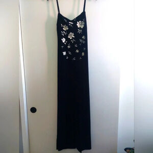 Vintage floral embroidered Velour Maxi dress black 11/12 M Whimsigoth Wedding