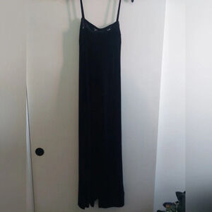 Vintage floral embroidered Velour Maxi dress black 11/12 M Whimsigoth Wedding