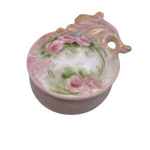 Vintage floral hand painted trinket dish boxes pink blue dresser box jewelry
