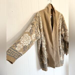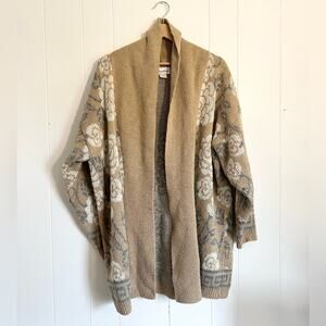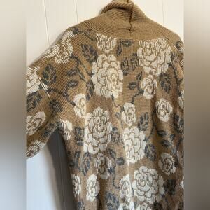 Vintage floral open cardigan chunky sweater grey brown thick acrylic fall
