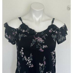FRESHMAN retro 90’s ADJUSTABLE strappy off shoulder top floral Ruffle VICTORIAN style 00337