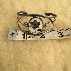 Vintage silver (unmarked) cuff. Flower stone inlay. Best for a small wrist.