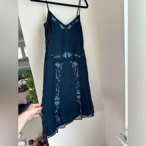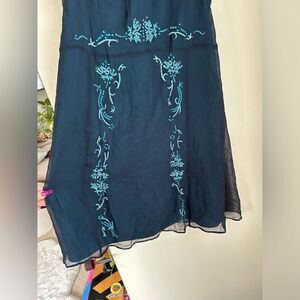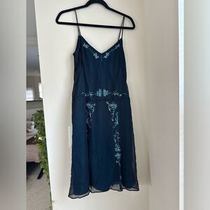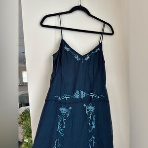 Vintage flowy laundry hippie style embroidered midi strappy blue dress fairycore