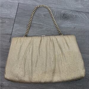 Vintage - formal Clutch- gold- some staining - metallic- chain- purse