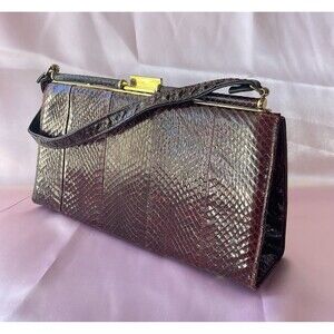 Vintage frame handbag purse clutch snakeskin Red