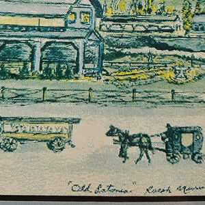 Vintage framed lithograph of Steam Train Railway Station depot Derby building