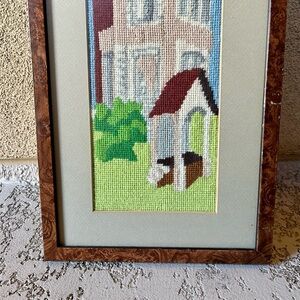 Vintage framed needlepoint European picture 11/28 inch