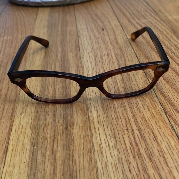 Purchased from a vintage frames shop, never used. Measurements are temple to temple 4.5 inches, temple to ear 5 inches. Lense size- 1 inch high and 1.5 across. Excellent condition no bite marks or scratches.