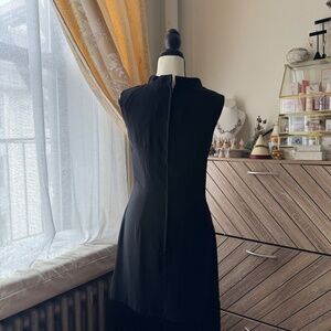Vintage black dress with fringe hem. Great shape. Classic silhouette. Fringe is well secured. Size 12 on the label but vintage so it fits like a size 2 or 4.