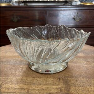 Vintage frosted glass and silverplate footed base mid century salad serving bowl