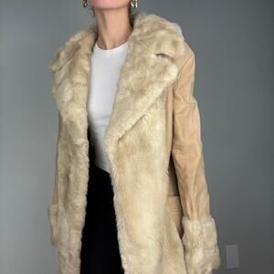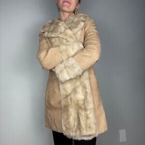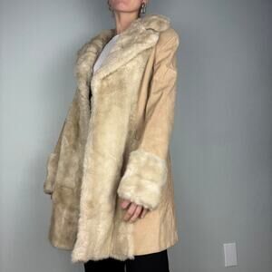 Vintage fur cream tan sherpa sueded faux fur trench coat 1960s made in englandd