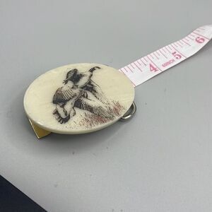 Vintage geese in flight carved belt buckle. This has been hand carved and inked. I’m guessing it is bone. Cross lined on back. Very heavy. Does show wear along edges and surface.