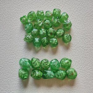 Set of gorgeous handmade Venetian Murano Glass Beads with gold foils in various sizes: 39 pieces.