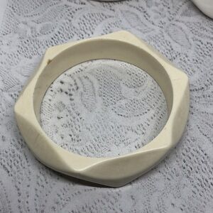 Vintage geometric cream and white bangle bracelets