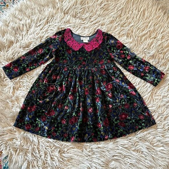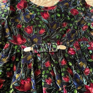 Vintage girls fancy dress with cinch clip size 6. Adorable lace collar. Velvety material with gold accents.