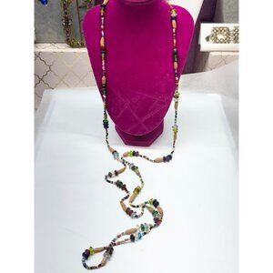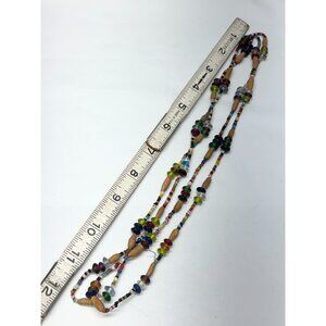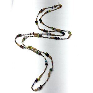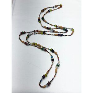 Vintage glass and wood beaded long necklace. Vintage glass beaded necklace with wood beads. Vintage necklace. MN53GH.