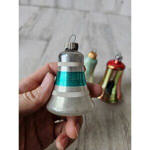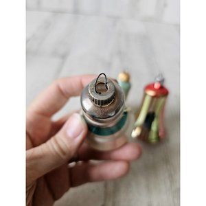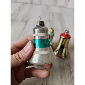 Vintage glass bell striped red green ornament Xmas set