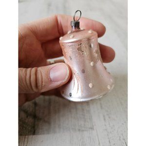 Vintage glass flocked bell beaded ornament mini Xmas pink tree