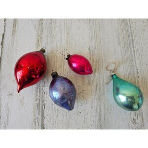 Vintage Blown Mercury Glass Christmas Ornament multi color Teardrop Blue Red Green