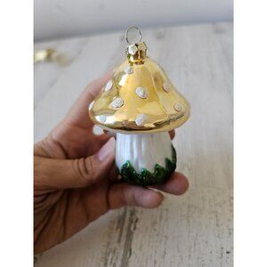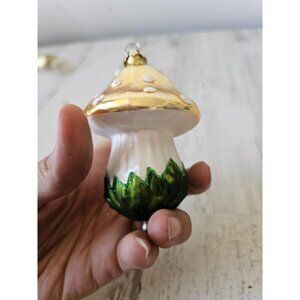 Vintage glass mushroom ornament yellow spotted Xmas tree fungi