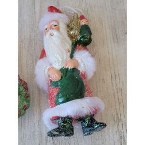 Vintage glitter Santa Claus set gift toy wreath ornament Xmas decor