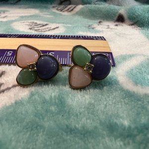 gold/crystal, pink, purple, green clip-on earrings - 1 pair