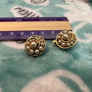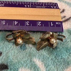 gold/pearl dangly earrings (tarnished) - 1 pair