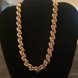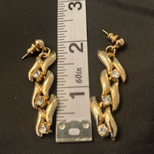 Vintage gold colored with crystals necklace & matching pierced earrings set EVC