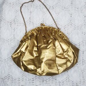 Vintage gold evening bag tiny 6" x 4.5" gold chain w/ kiss clasp pleated FLAW