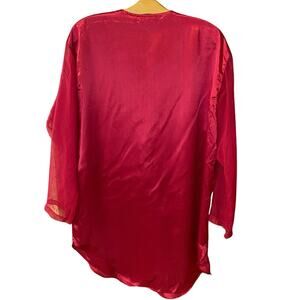 Vintage gold label Victoria’s Secret Red Satin Sheer Sleeve Button Blouse M/L