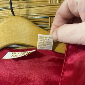 Rare vintage Victoria’s Secret satin blouse in a bold ruby red. Gorgeous sheen with sheer long sleeves and ornate pearl-style gold buttons down the front. Relaxed oversized fit (marked M/L) gives it versatile styling—wear as a blouse, layering piece, or glam nightwear. Classic 80s/90s Victoria’s Secret lingerie-inspired design that collectors love. Model image is AI generated for styling purposes and may vary slightly from actual sleep shirt listed. Please see other photos.