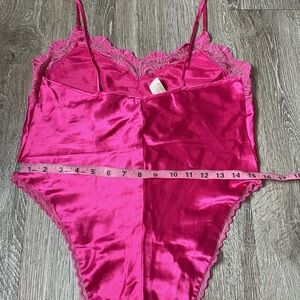 Vintage gold label Victoria's Secret hot Pink Chemise Satin teddy bodysuit