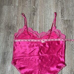 Vintage gold label Victoria's Secret hot Pink Chemise Satin teddy bodysuit
