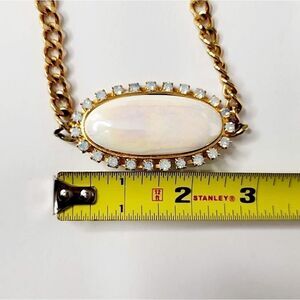 Vintage gold link chain with large opal stone rhinestones statement necklace