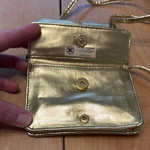 Vintage gold mesh Whiting & Davis small crossbody bag. Snap shut. Mirror and zippered compartment plus open compartment inside. There is also a second snap shut compartment. Strap drop is 23”. Measurements are 4” tall x 5” wide.