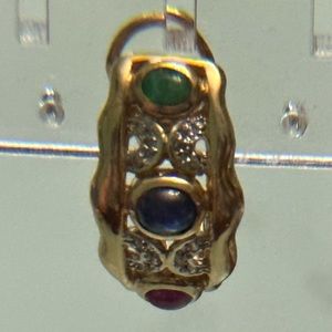 and real gemstones (red ruby, blue sapphire, green emerald cabachon shaped ) truly unique and one of a kind pair