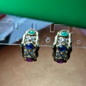 Vintage gold solid 14 k earrings with mined gemstones 💎and real diamonds