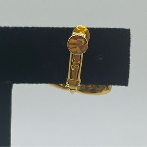 Vintage, gold tone and pink enamel clip on earrings with screws. Signed JS