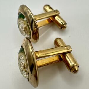 Vintage gold tone domed glass reverse painted intaglio roses cameos cufflinks