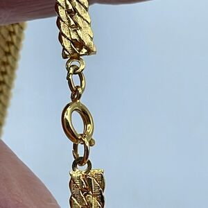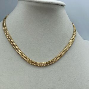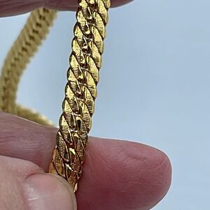 Vintage gold tone textured herringbone choker chain. Spring clasp. Quite wide at a 1/4”. Minimal wear.