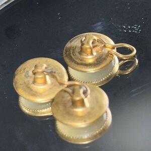 Vintage gold tone round cuff links with faux mother of pearl “stones”
