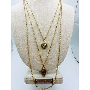 Vintage goldette triple strand carnelian charm Necklace 20”